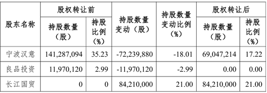 此外,宁波汉意还要再转司20,451,000股给相似是武汉国资底下的武汉网谷鼎新投资有限公司,转让价亦然12.42元/股。